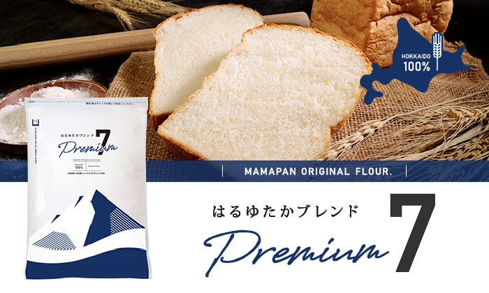 北海道産強力粉プレミアム7の特徴であるしっとりもちもちとした食感を活かして、桜エキスで色付けした生地を白く焼き上げることで見た目もかわいい桜餅風に仕上げました。