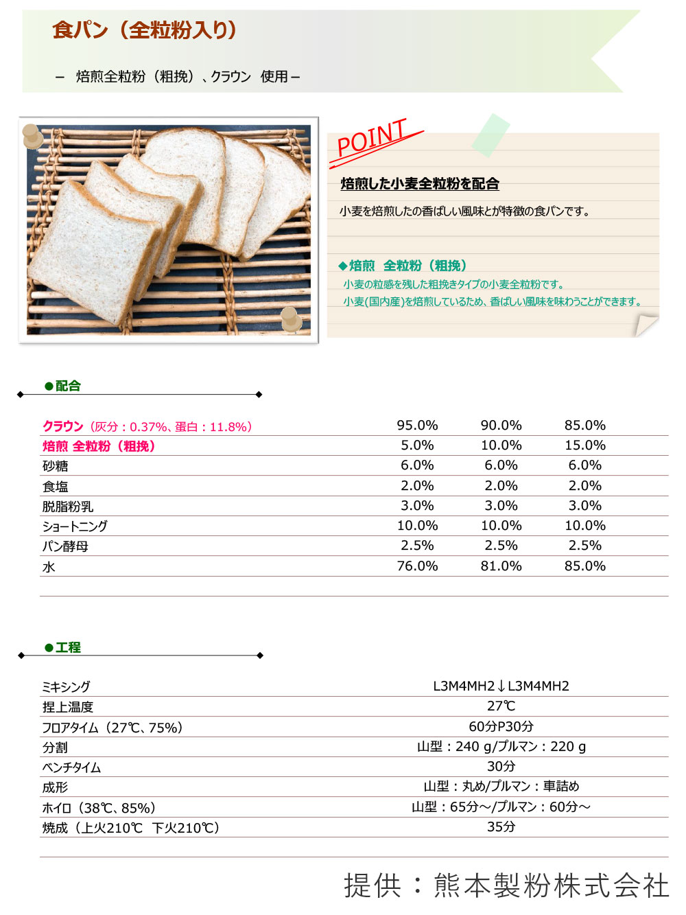 ふすまやセモリナの粒感をしっかり残した、粗挽きタイプの焙煎全粒粉です。パンや焼き菓子に加えるだけで、香ばしい風味も広がり、素材の良さを実感していただけます。