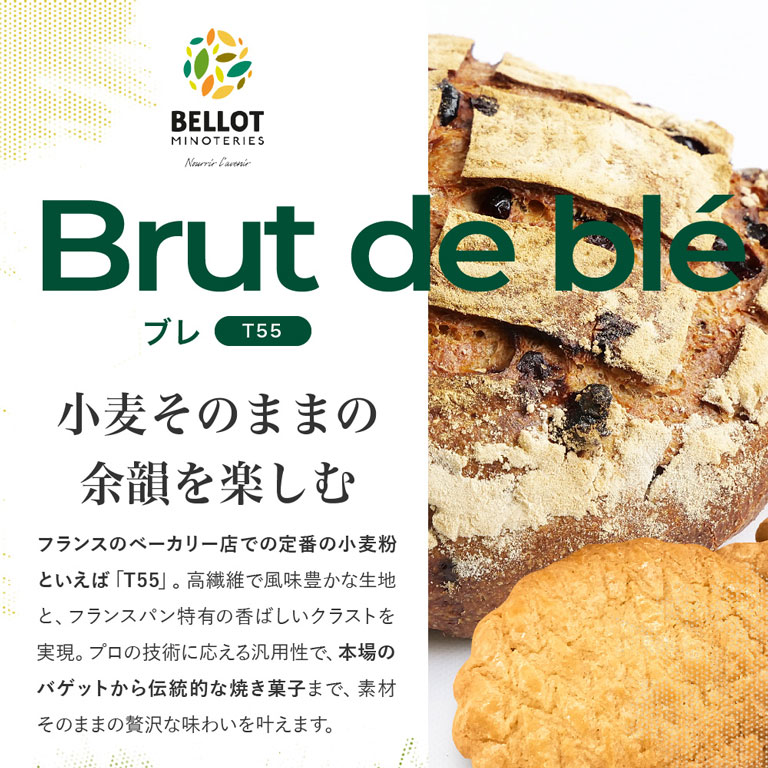 完全フランス原産の小麦のみを使用し、土地の個性が息づく素材を丁寧に、そして繊細に磨き上げたのがBELLOT社小麦粉です。