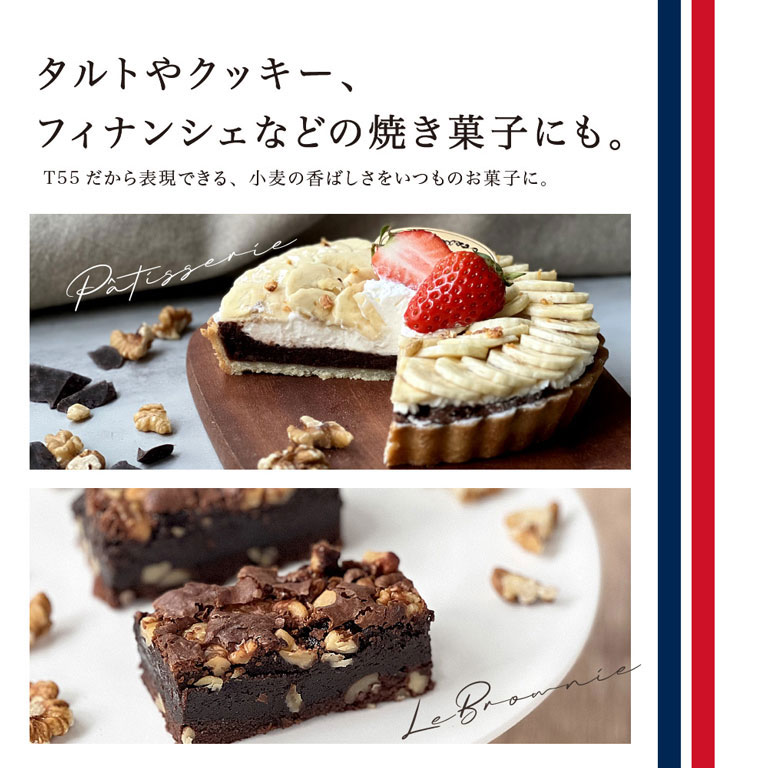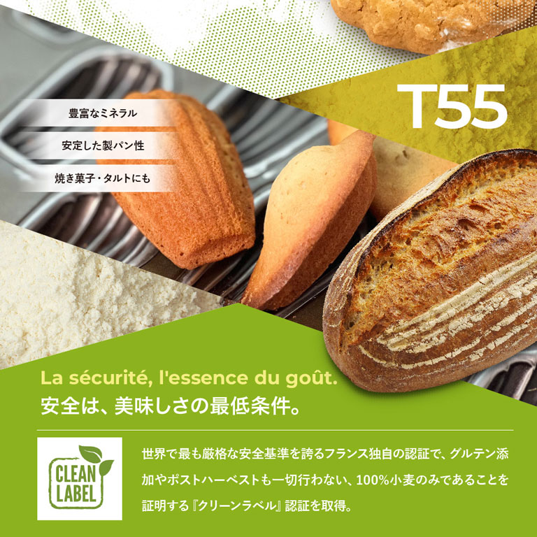 製パンから製菓まで万能なタイプ55はフランスのベーカリーの基本の粉。”ブレ タイプ65”ほど主張しすぎないため、他の小麦粉などとのブレンドにも最適です。