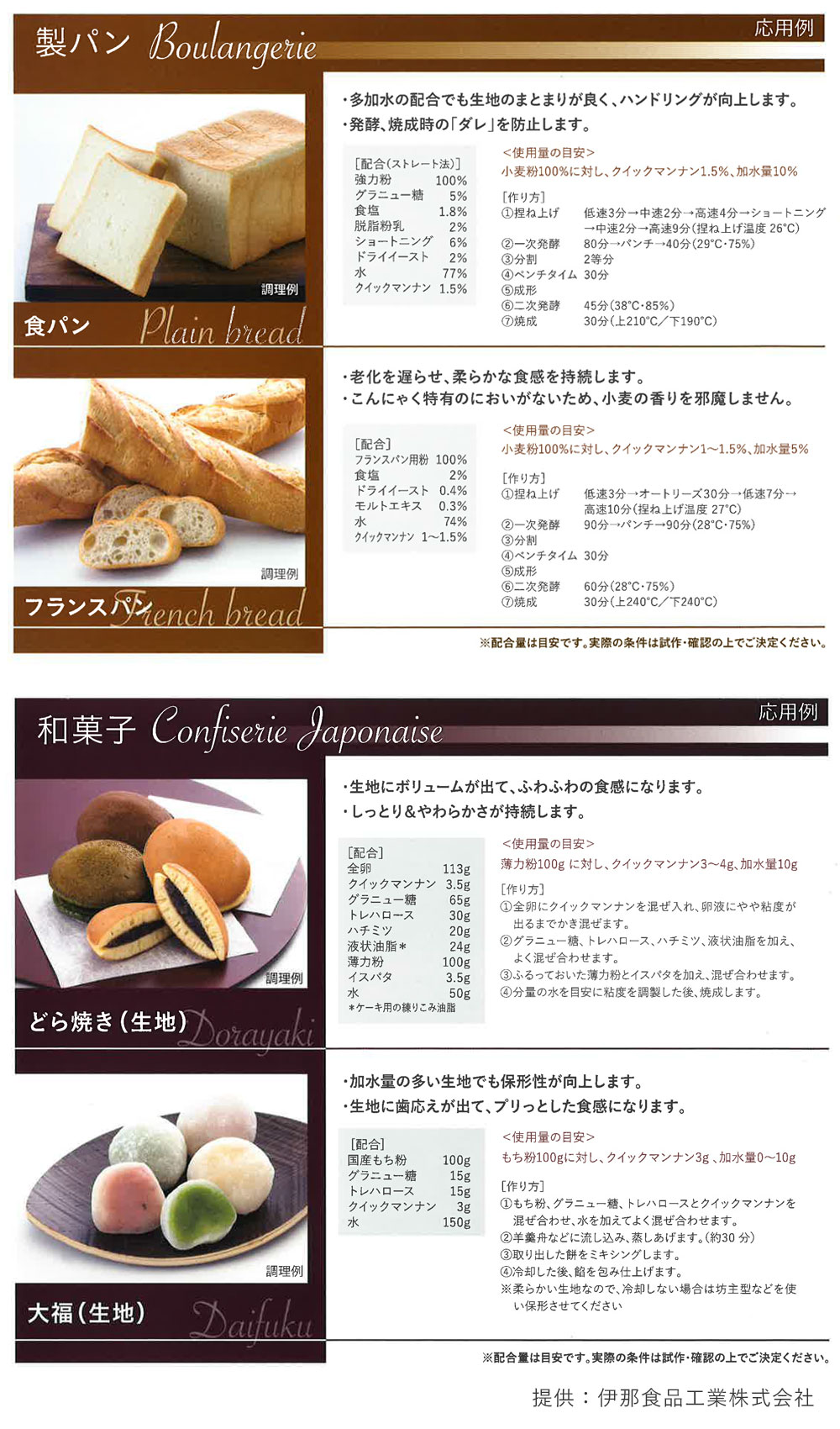 パンの場合:小麦粉100%に対し、クイックマンナン1.5%、加水量5~10%