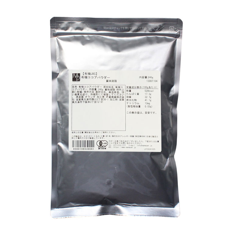 オーガニックチョコレートメーカーであるカオカ社が製造する有機JAS認定のココアパウダー(脂肪分20〜22%)です。