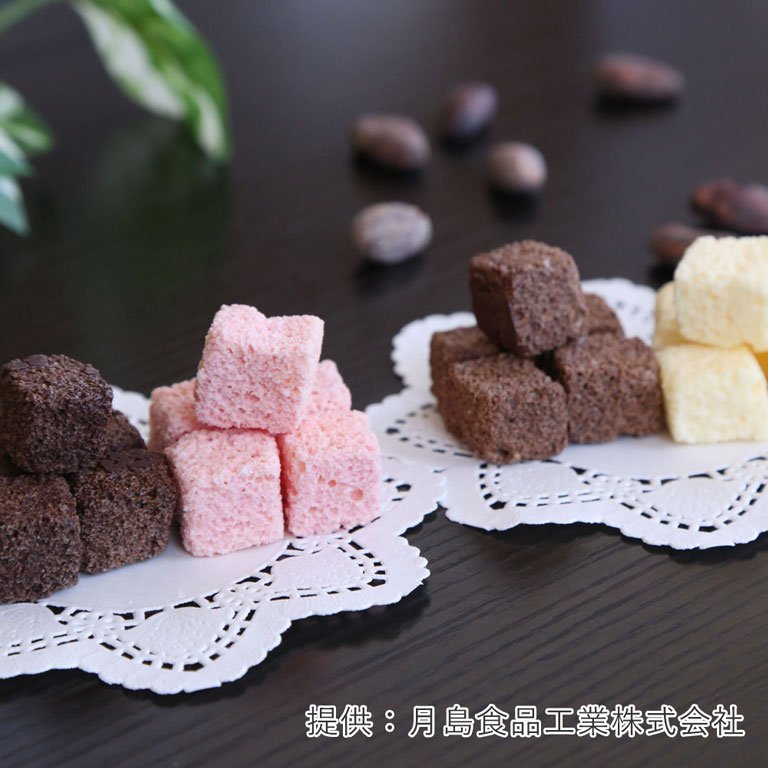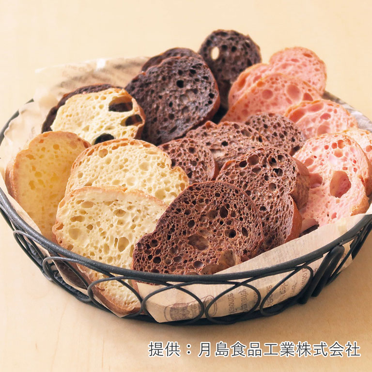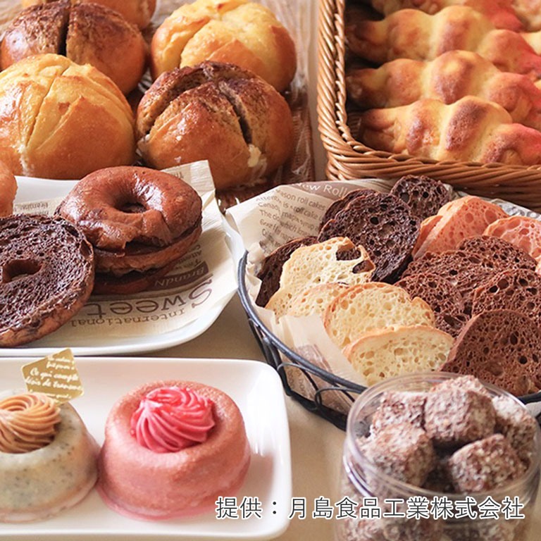 また、製造過程で出てしまうパンの耳やスポンジの切れ端などの端材と組み合わせたりと二次加工として幅広くご使用いただけます。