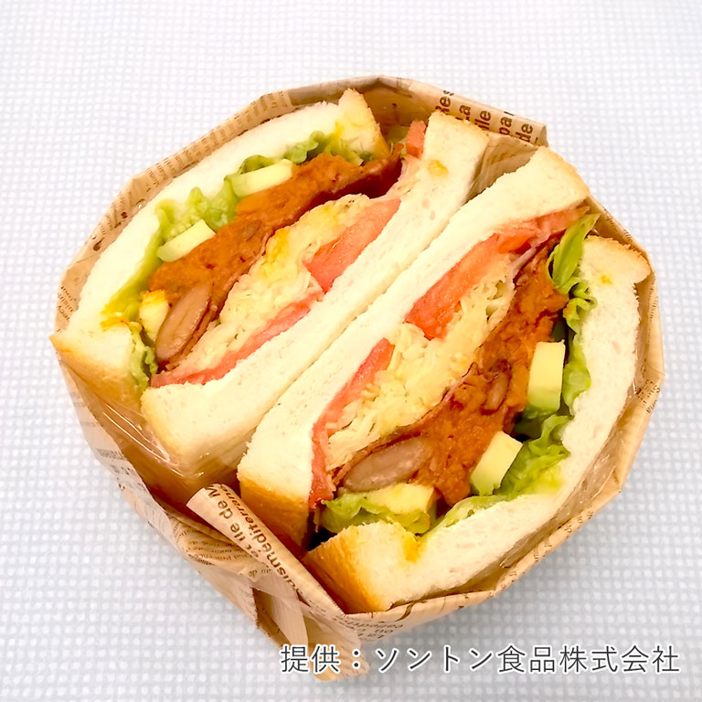 豆のほくほくした感じと辛味のあるソースがマッチして、辛すぎず旨みのある味わいです。パンに挟むだけで食べごたえがあり、野菜やチーズとの相性も抜群です。