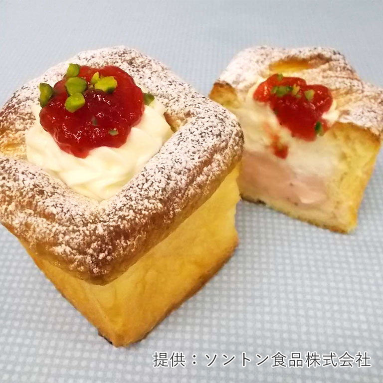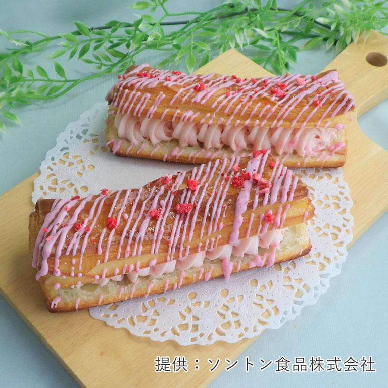 とちおとめのみずみずしく爽やかな香りとスッキリとした甘味が生きた、かわいらしいピンク色のいちごミルククリームです。生食が可能なので、デニッシュの仕上げやフルーツサンドにもオススメです。