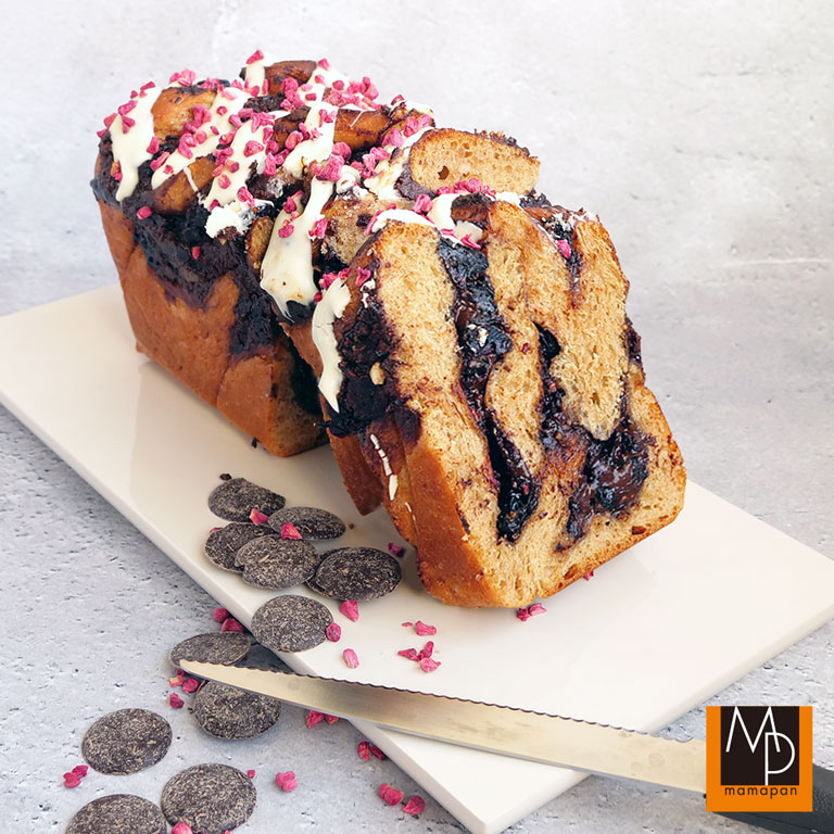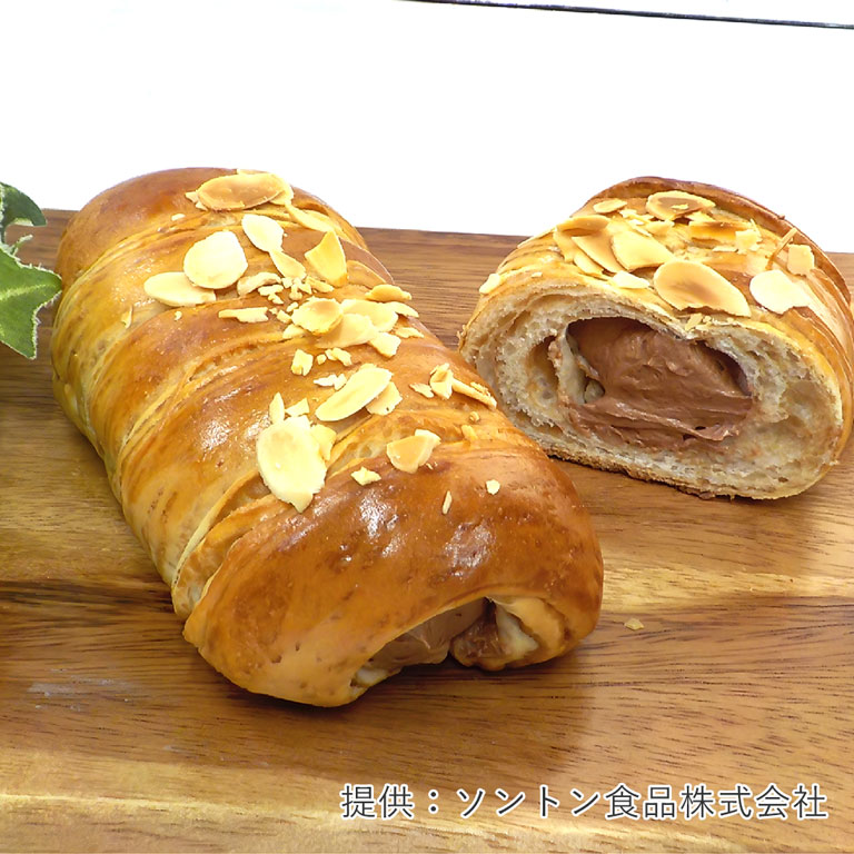 ヘーゼルナッツの風味に、高級チョコレートを食べているようなコク深さを感じます。ナッツなどを組み合わせて、濃厚な味わいのパンをお楽しみください。