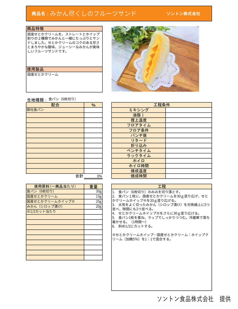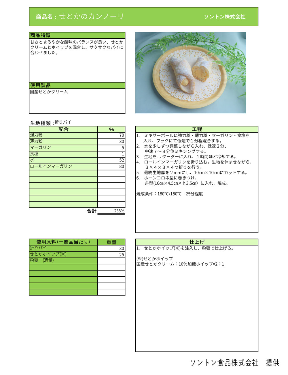 希少な国産せとかのコクのある甘さとまろやかな酸味を味わえるフルーツクリームです。包み込みやトッピング焼成はもちろん、生食可能なクリームなので、手軽にサンドするだけでも美味しくお召し上がりいただけます。