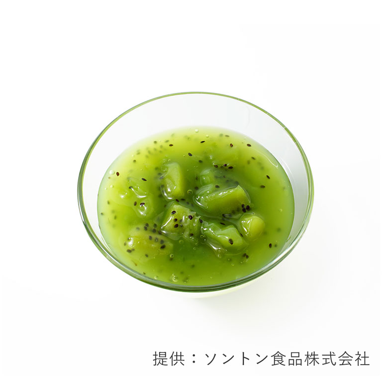キウイフルーツ独特の甘酸っぱさと鮮やかな緑色がスイーツやドリンクに彩りを添えてくれます。果肉のジューシーさと種のプチプチした食感も楽しいです。