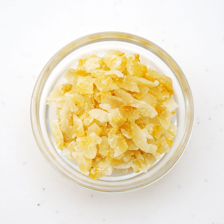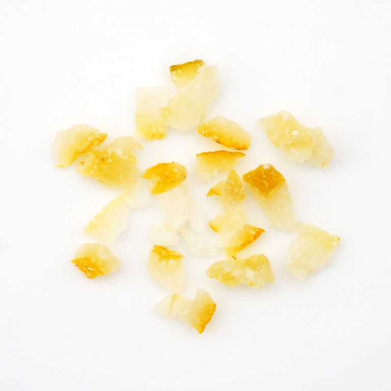 柚子の程よい酸味と香りが楽しめるドライタイプの柚子です。約5mmカットで食感も残るので、パウンドケーキやクッキー、パンの練りこみ、トッピングなど幅広い用途でお使いいただけます。