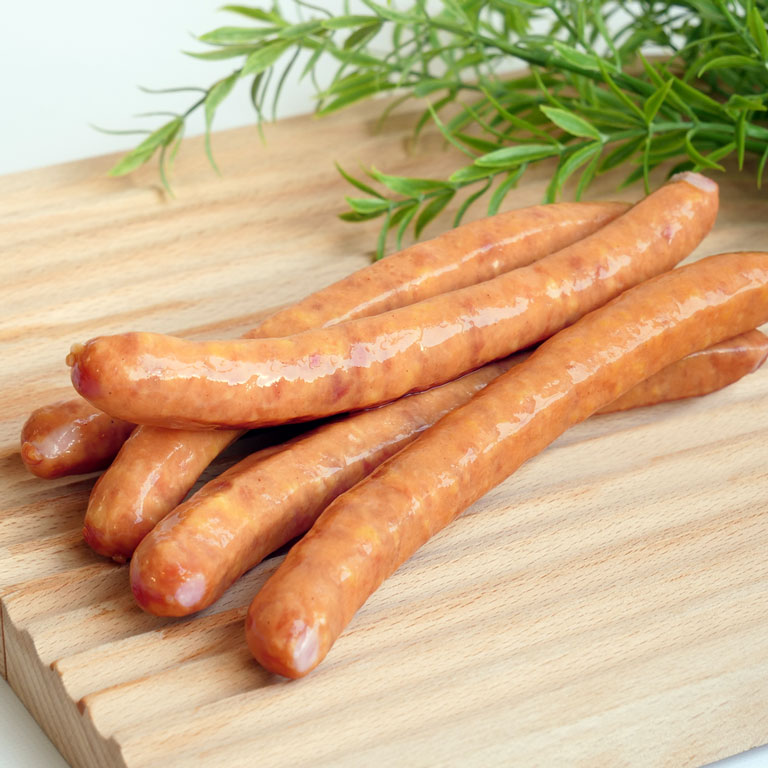 豚トロを使用した濃厚でジューシーな旨みが楽しめるウインナーです。スモークがしっかりときいているので、味わいが強めのソースなどと合わせても存在感があります。