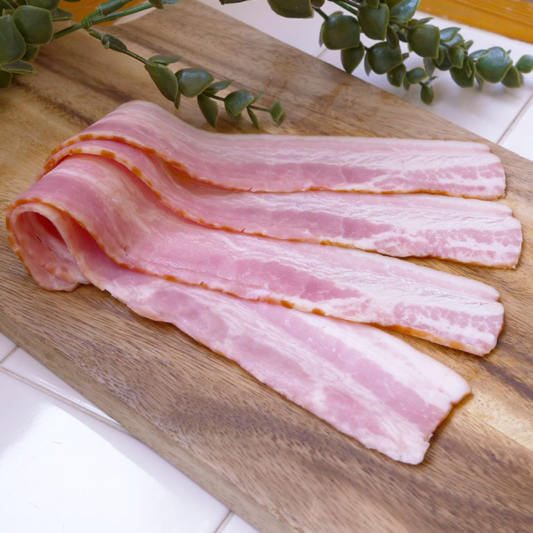 ほどよい厚みがあるので、焼いたときの香ばしさとベーコンの旨みをしっかり楽しめます。パンに合わせるのはもちろん、サラダやパスタに少し加えるだけでも料理のアクセントにピッタリです。