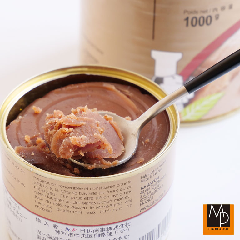 長時間の加熱によって水分量が抑えた、やや固めの質感と栗本来の濃厚な風味が特徴です。生地への練り込みや焼き菓子などはもちろん、泡立てた生クリームを混ぜてモンブランやマロンムースとしてお使いいただけます。