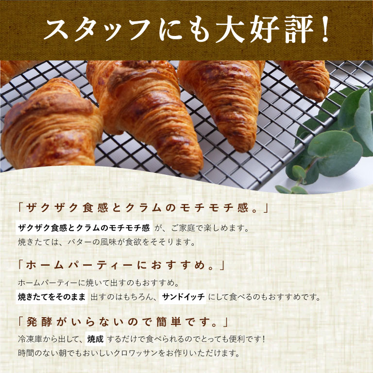 こだわりの高級冷凍生地ブランドである「ヘリテージ」のミニクロワッサンです。焼き上げるだけで、バターの香りとクロワッサン生地のサクサクとした食感をお楽しみいただけます。また、ミニサイズなので、軽食やお子様のおやつなどにぴったりです。
