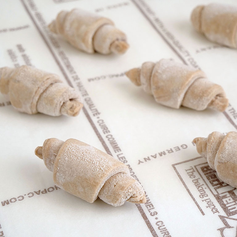 ※天板に並べる際に隙間なく並べると、火の通りが悪くなり焼きムラが出たり、膨らみが悪くなる場合がありますので、余裕をもたせて並べてください。