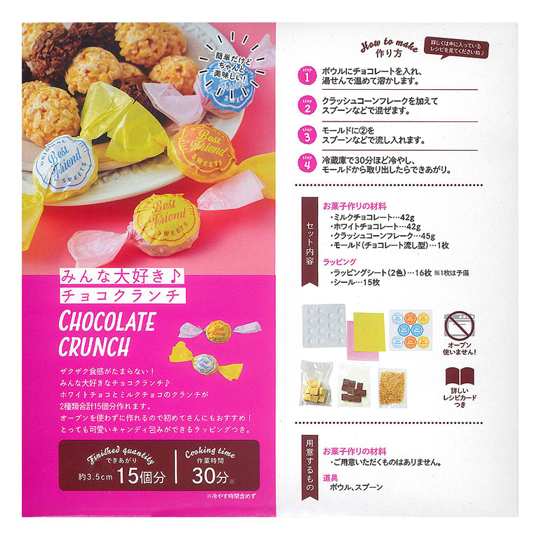 コーンフレークのザクザク食感がたまらない、人気のチョコクランチが15 個お作りいただけるセットです。