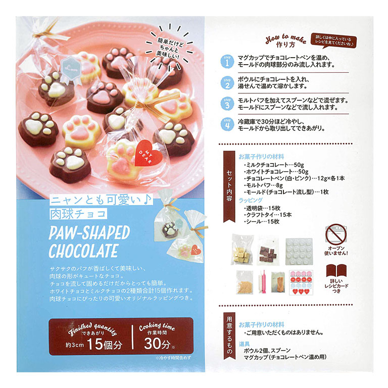 猫好きには堪らない「ニャン」とも可愛いチョコレートのお手軽な手作りキットです。溶かして固めるだけ、オーブン要らずなのでお子様との手作りバレンタインにもオススメです。