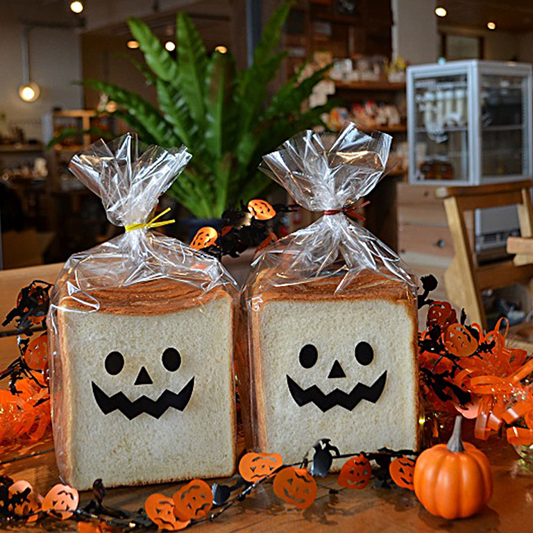 ハロウィンシーズンにぴったりな、ジャック・オ・ランタンの顔が描かれたかわいらしい食パン袋です。ご家庭で焼いた食パンの保存はもちろん、お好みでカラータイやシールを使って、プレゼント用にラッピングするのもオススメです。