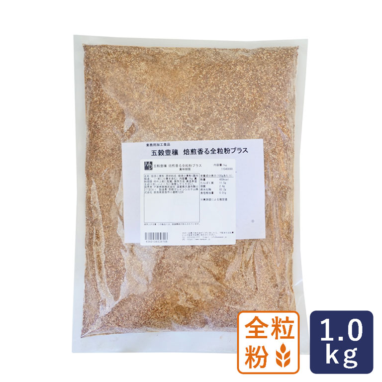 国産小麦を特殊技術により焙煎・粉砕した全粒粉です。 通常の小麦粉に比べて食物繊維が多く、ミネラルやビタミンも多く含まれています。 香ばしい風味が特徴で、パン・菓子類のほか、麺類・フライ物にもご使用いただけます。
