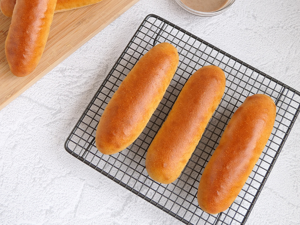 春よ恋ブレンド365Basicベースの生地に全粒粉の湯ゲルを使って小麦の旨みと水分をたっぷり抱き込ませました。甘く香ばしい味わいと、もっちりソフトな食感が楽しめるコッペパンです。