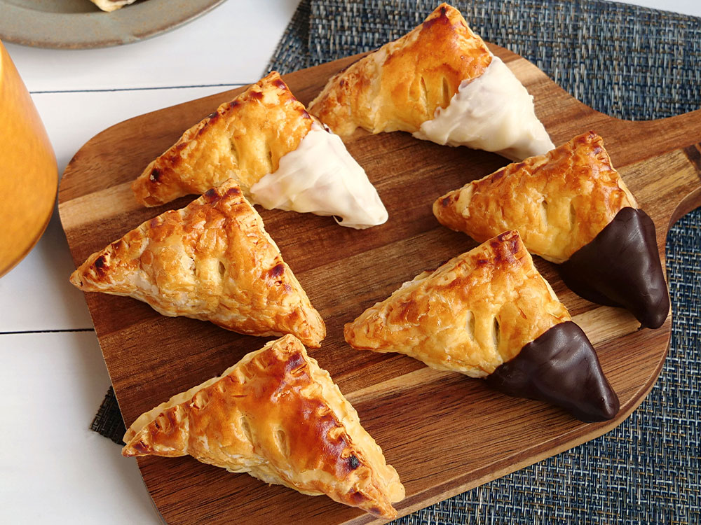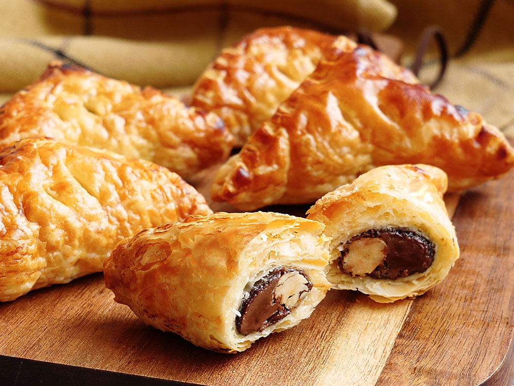 のばさず使えるパイシートにチョコクリームを包んで焼くだけの手軽さと、小さなお子様でも食べやすいサイズは手作りおやつにおすすめです。